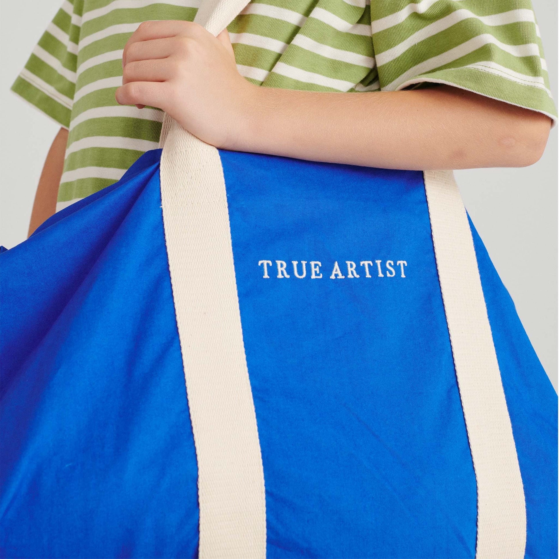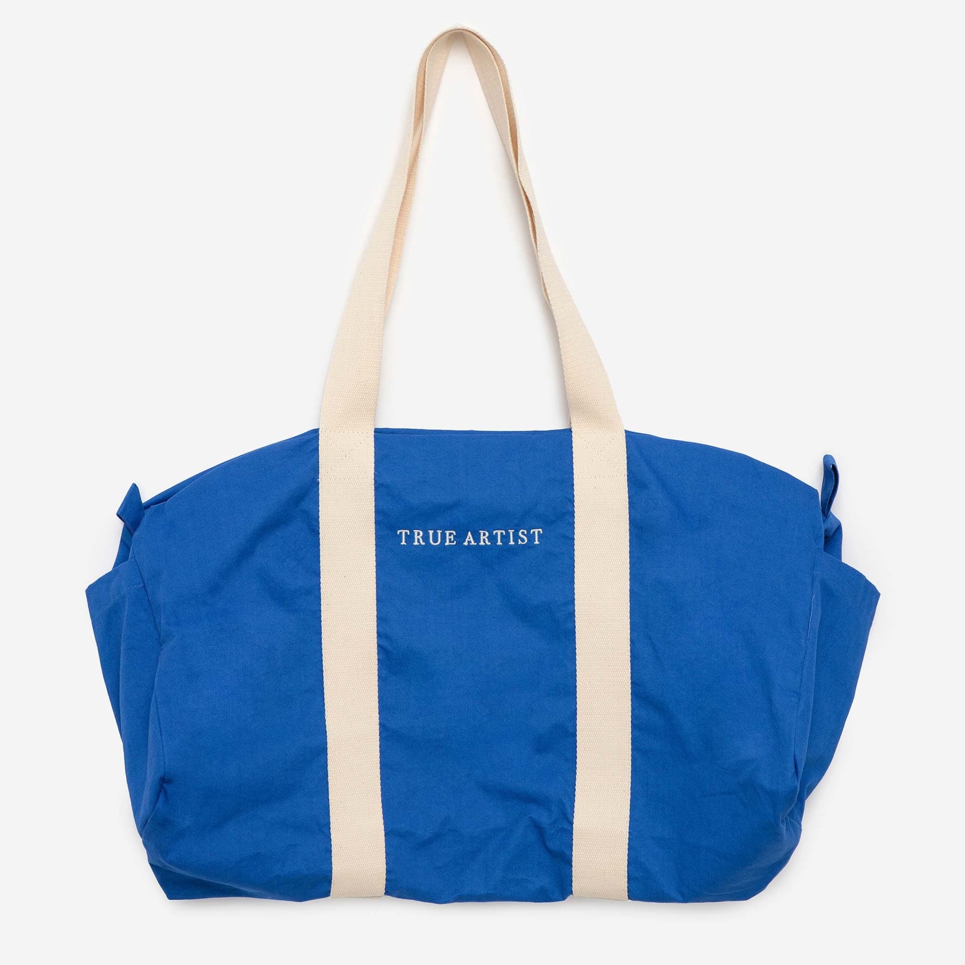 True Artist' new collection gym bag is made of 100% cotton. It is designed with zipper closing and cotton double handles. It has two side pockets and it features our True Artist logo embroidered in contrast white at the front.