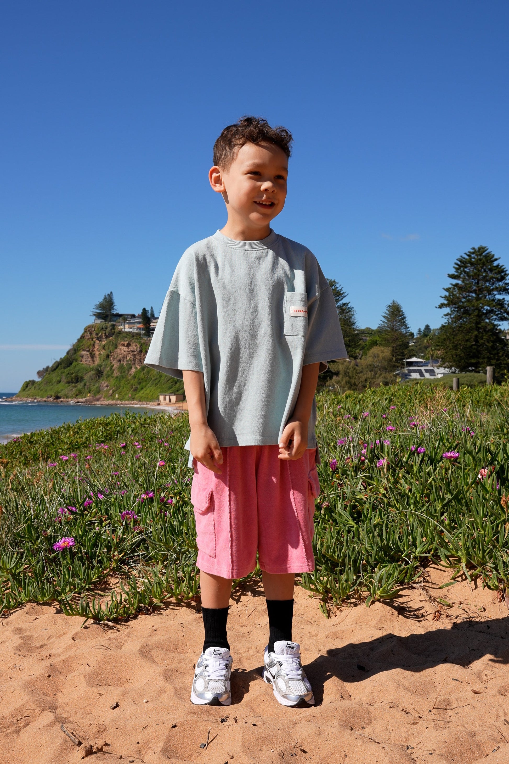 Boxy, oversized tee cut from midweight cotton jersey. Features a chest pocket with Extra-Extra woven label and dropped shoulders for a relaxed silhouette that holds its shape.